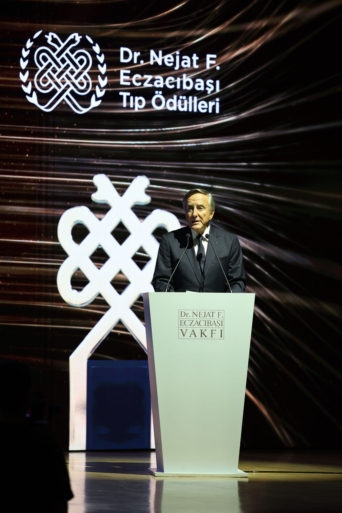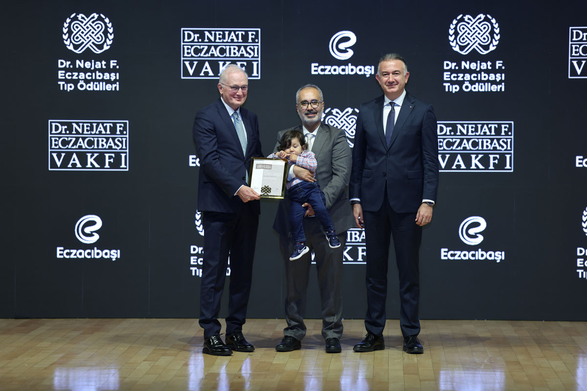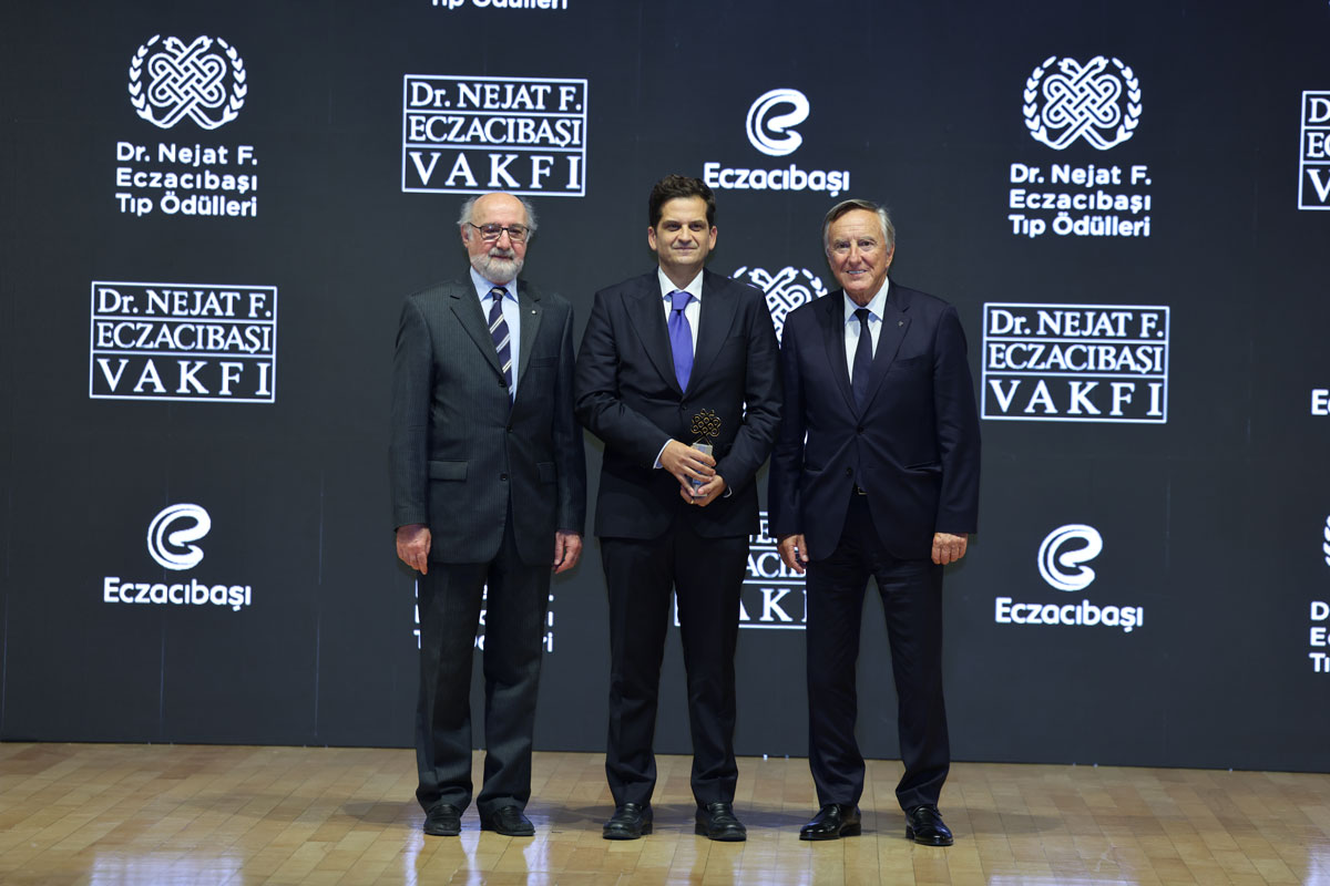 Soldan sağa: Eczacıbaşı Holding Yönetim Kurulu Başkan Yardımcısı Faruk Eczacıbaşı, 2019 Dr. Nejat F. Eczacıbaşı Tıp Bilim Ödülü sahibi Prof. Dr. Ahmet Höke