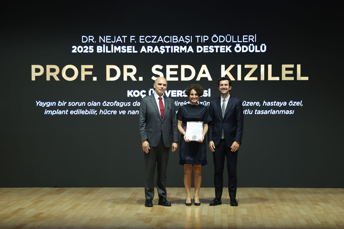 2025 Bilimsel Araştırma Destek Ödülü, yemek borusunda daralma yaşayan hastalar için kişiye özel, hücre ve nanoparçacık içeren üç boyutlu implant plakalarının tasarlanmasını hedefleyen araştırmasıyla Prof. Dr. Seda Kızılel’e verildi.